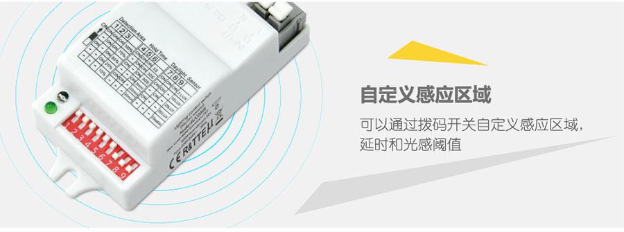 欧切斯此系列微波感应产品采用先进的微波和光线采集技术,为客户提供了一套简单便捷的智能节能解决方案。此系列智能微波产品使用 5.8G 国际开放频段,能有效过滤其它空间信号干扰,工作稳定;可以通过拨码开关自定义感应区域、延时和光感阈值,可广泛应用于公共区域如走廊、楼道,卫生间,地下室,停车场、仓库、监控室等场所。